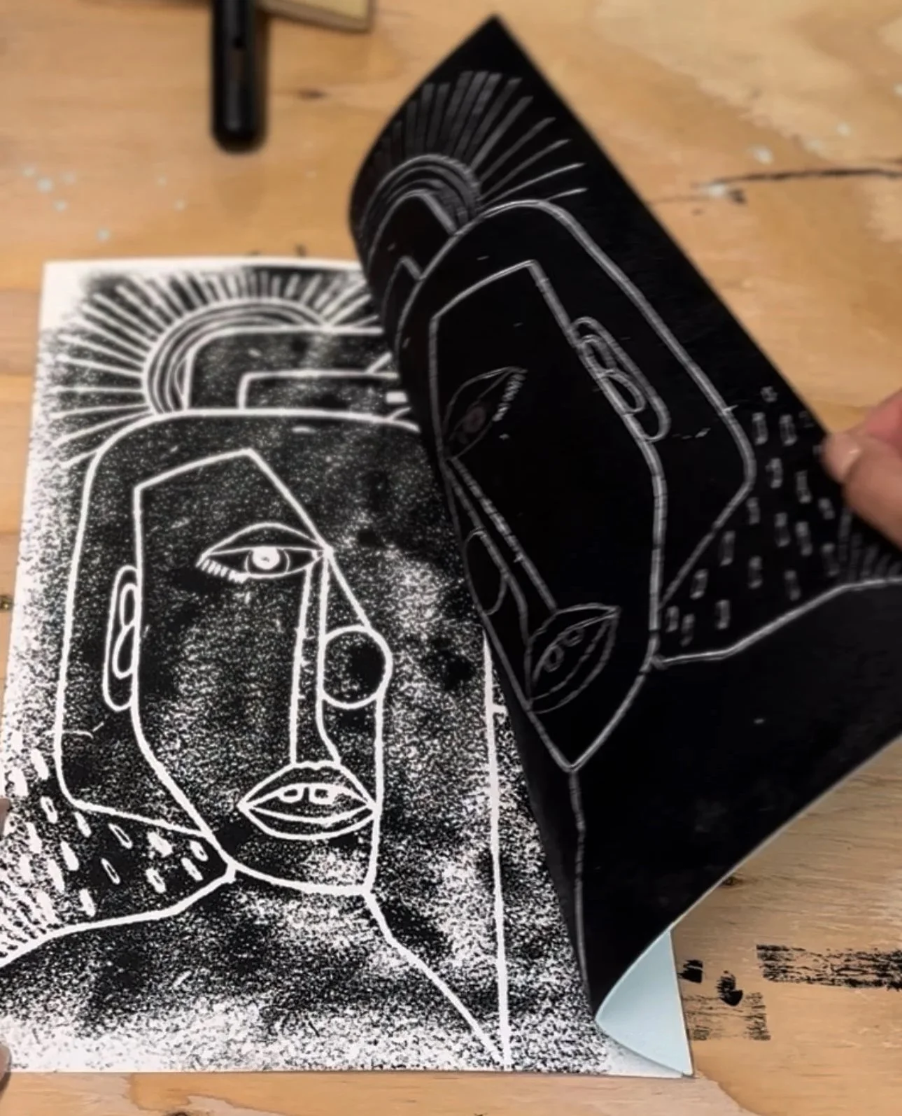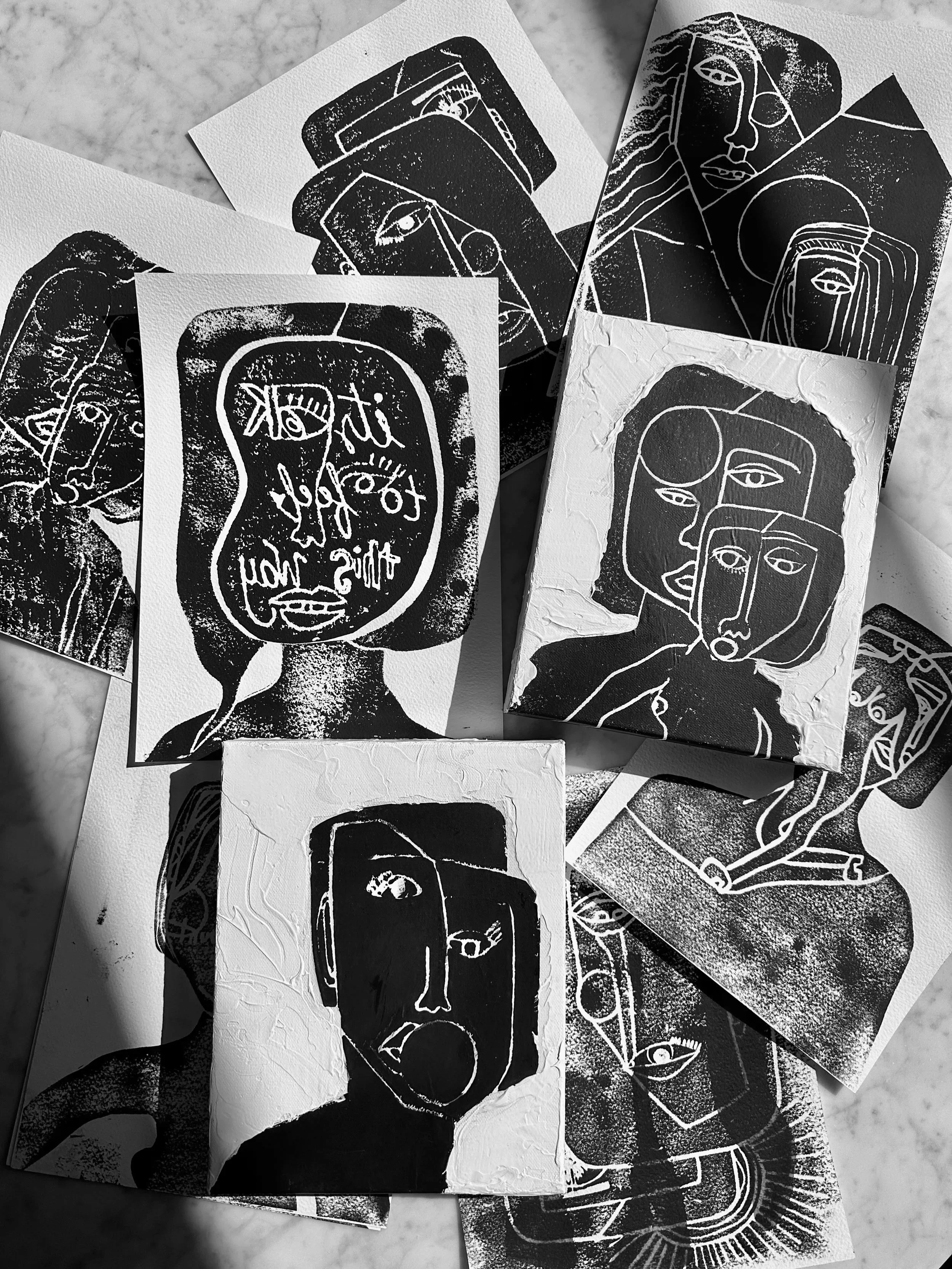 Pressed Reflections began as an experiment — a simple desire to carve something by hand and let the result be whatever it wanted to be. I didn’t plan the faces, the expressions, or the themes. They surfaced on their own, each one arriving through the pressure of the pen on the foam board and the weight of the ink when it transferred.